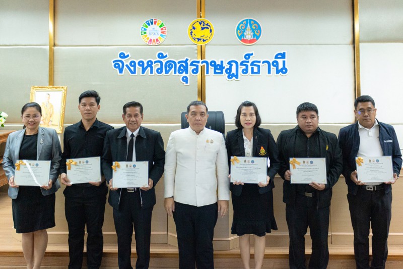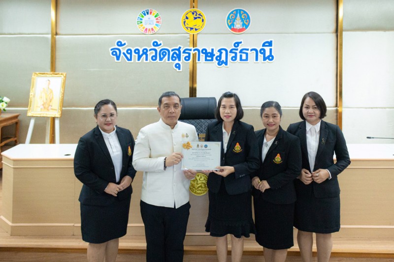 วันที่ 9 มกราคม 2569 นายเลอศักดิ์ รัชณาการ ผู้อำนวยการสำนักงานเขตพื้นที่การศึกษาประถมศึกษาสุราษฎร์ธานี เขต 1 มอบหมายให้นางดวงมณี ฉิมพลี ผู้อำนวยการกลุ่มอำนวยการ พร้อมด้วยทีมขับเคลื่อน นางสาวณฐกร รักษ์ธรรม ผู้อำนวยการกลุ่มนิเทศ ติดตามและประเมินผลการจัดการศึกษา, นางสาวนลิน เล็กมาก ศึกษานิเทศก์ และนางสาวโสภิตา ปลอดภัย ศึกษานิเทศก์ เข้ารับเกียรติบัตรจากคณะกรรมการส่งเสริมคุณธรรมแห่งชาติ เป็น “องค์กรคุณธรรมต้นแบบโดดเด่น” ณ ห้องประชุมเมืองคนดี ศาลากลางจังหวัดสุราษฎร์ธานี