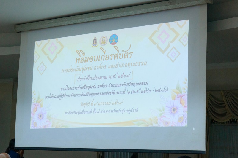 » ภาพกิจกรรมต่างๆ » รับเกียรติบัตร “องค์กรคุณธรรมต้นแบบโดดเด่น” การประเมินชุมชน อำเภอ องค์กรคุณธรรมของจังหวัดสุราษฎร์ธานี ประจำปีงบประมาณ พ.ศ. 2568