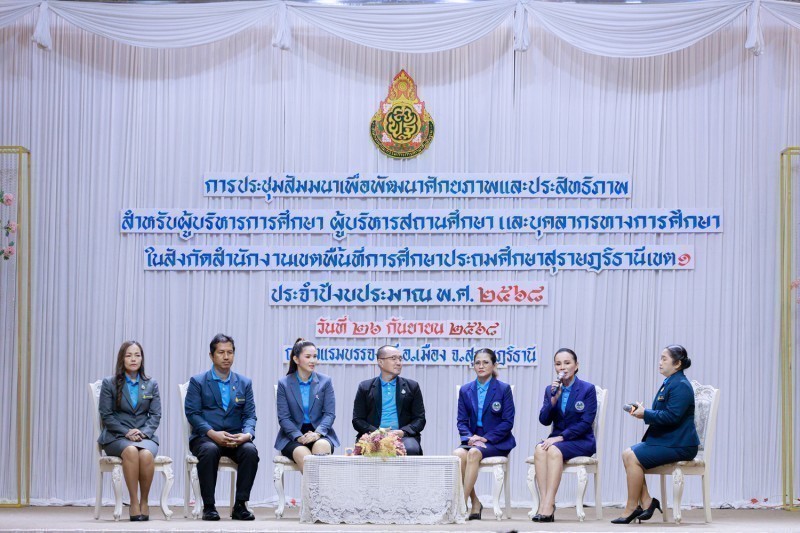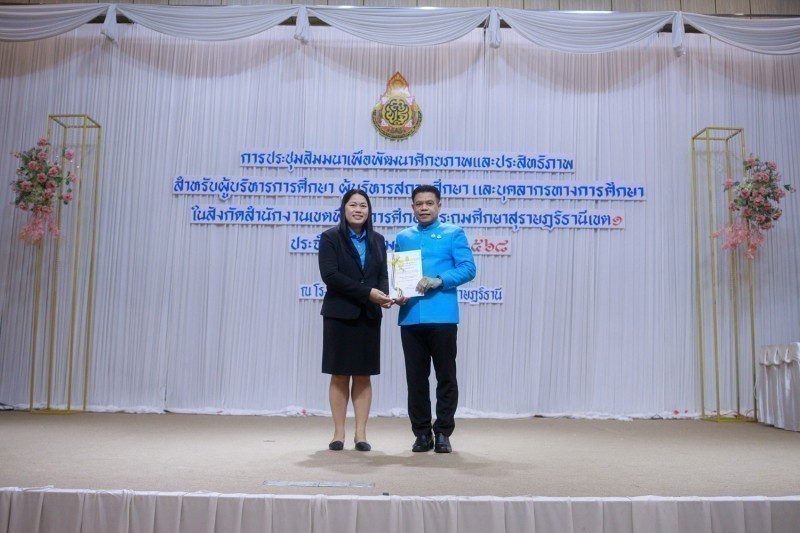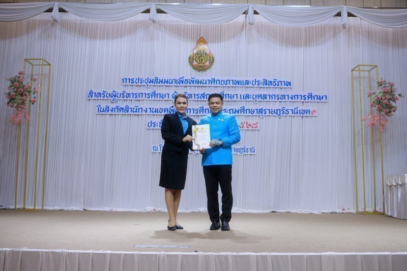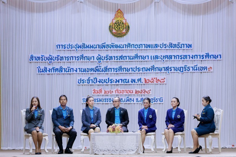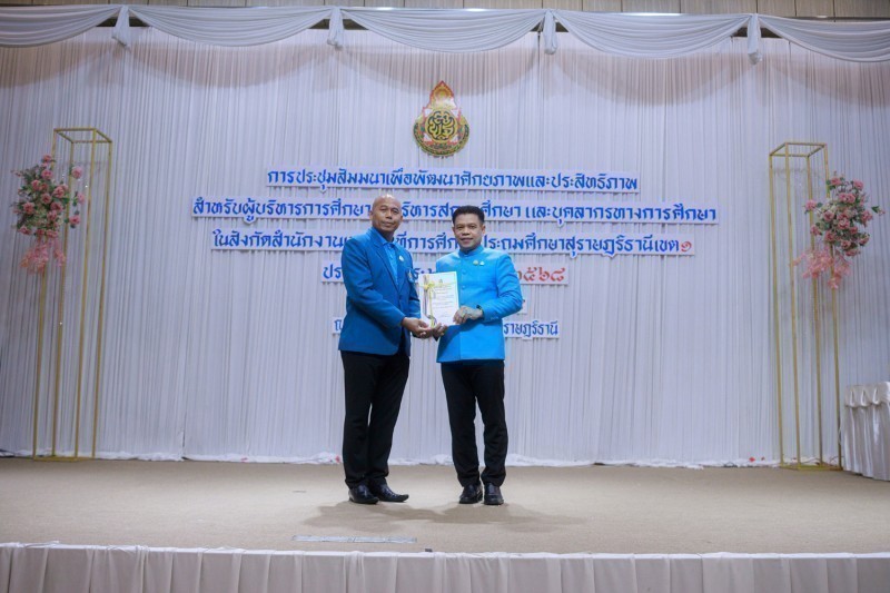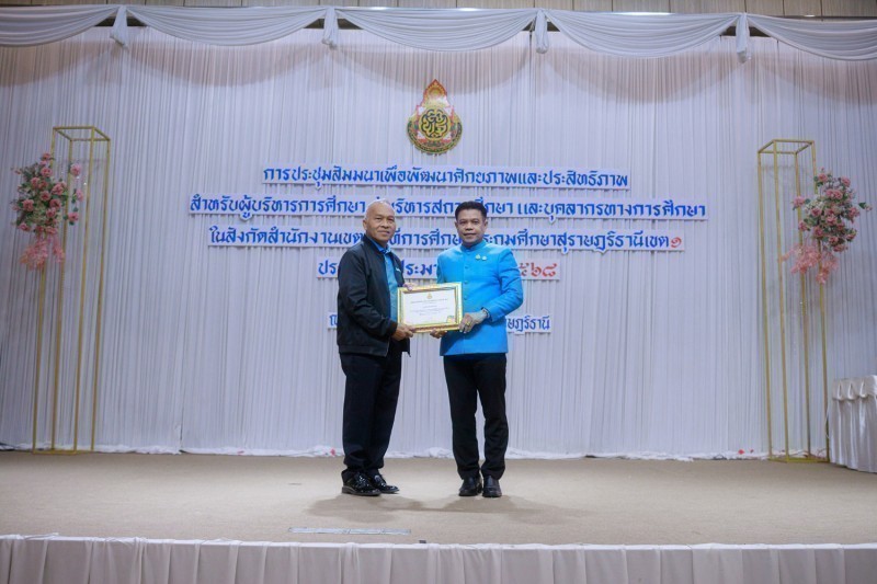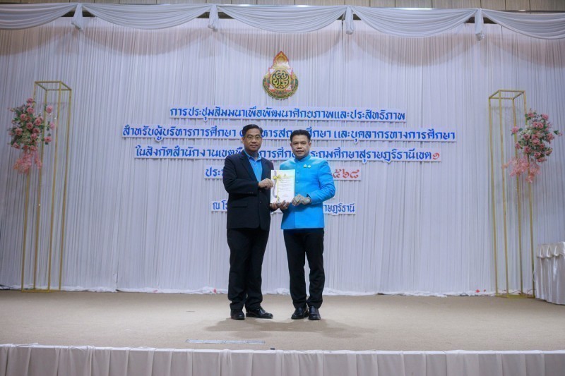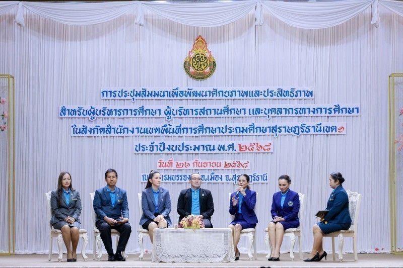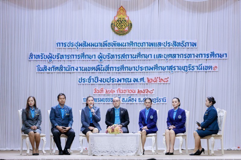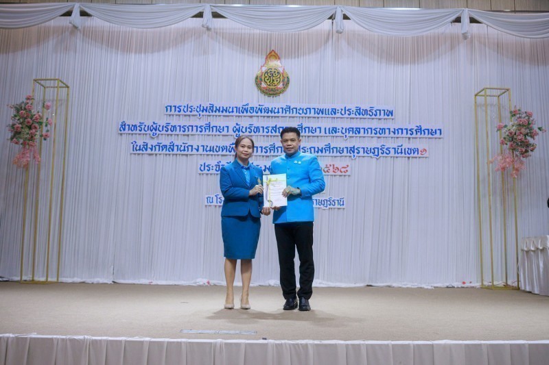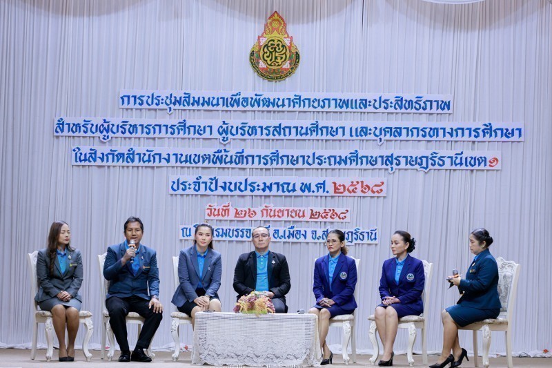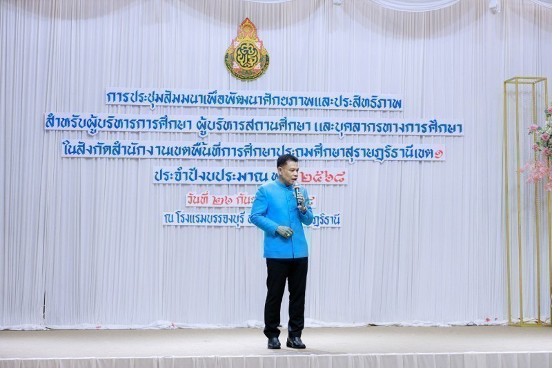 วันที่ 26 กันยายน 2568 นายเลอศักดิ์ รัชณาการ ผู้อำนวยการสำนักงานเขตพื้นที่การศึกษาประถมศึกษาสุราษฎร์ธานี เขต 1 เป็นประธานการประชุมสัมมนาเพื่อพัฒนาศักยภาพและประสิทธิภาพ สำหรับผู้บริหารการศึกษา ผู้บริหารสถานศึกษา ข้าราชการครู และบุคลากรทางการศึกษา สังกัดสำนักงานเขตพื้นที่การศึกษาประถมศึกษาสุราษฎร์ธานี เขต 1 (ครั้งที่ 3) โดยมีวัตถุประสงค์เพื่อให้ผู้บริหารการศึกษา ผู้อำนวยการกลุ่ม ศึกษานิเทศก์ ผู้อำนวยการโรงเรียน รองผู้อำนวยการโรงเรียน สังกัดสำนักงานเขตพื้นที่ การศึกษาประถมศึกษาสุราษฎร์ธานี เขต 1 ได้รับทราบนโยบาย จุดเน้น และ แนวทางการปฏิบัติงานในการพัฒนาคุณภาพการศึกษาของกระทรวงศึกษาธิการ และสำนักงานคณะกรรมการการศึกษาขั้นพื้นฐาน ส่งเสริม สนับสนุน ยกระดับคุณภาพการศึกษา เสริมสร้าง ความเข้มแข็ง ให้สถานศึกษาในสังกัด สามารถขับเคลื่อนแผนงาน/โครงการ ให้บรรลุเป้าหมายของสำนักงานเขตพื้นที่การศึกษาต่อไป โดยมีกลุ่มเป้าหมาย คือ ผู้บริหารการศึกษา ผู้อำนวยการกลุ่ม ศึกษานิเทศก์ ผู้อำนวยการโรงเรียน รองผู้อำนวยการโรงเรียน รักษาการ ผู้อำนวยการโรงเรียน และเจ้าหน้าที่ผู้รับผิดชอบที่เกี่ยวข้อง รวมจำนวน 192 คน ณ โรงแรมบรรจงบุรี อำเภอเมืองสุราษฎร์ธานี จังหวัดสุราษฎร์ธานี