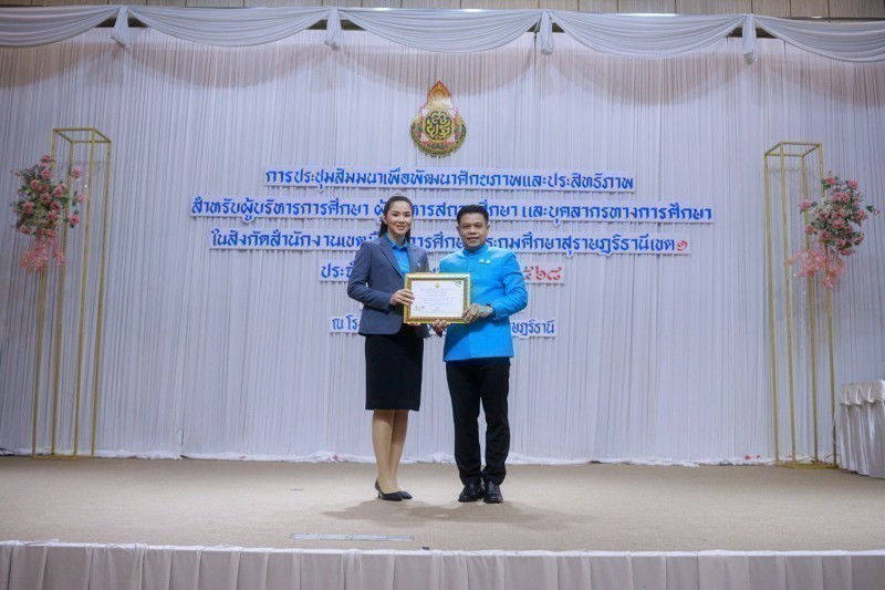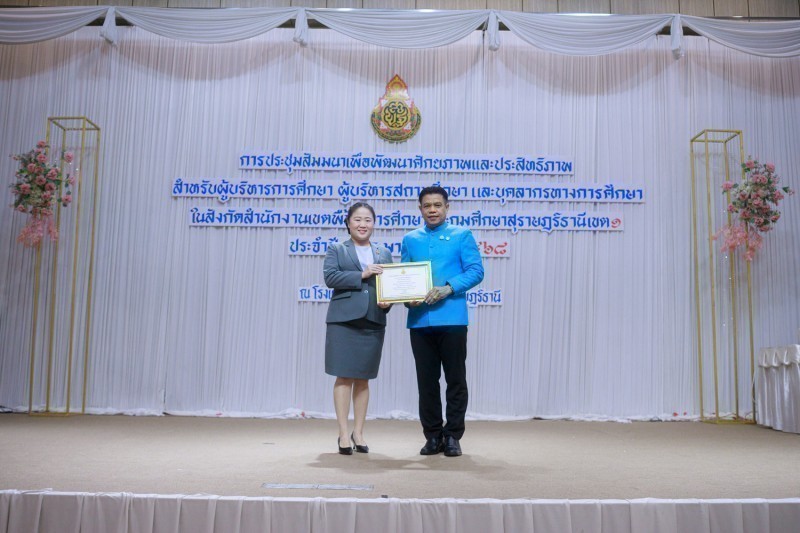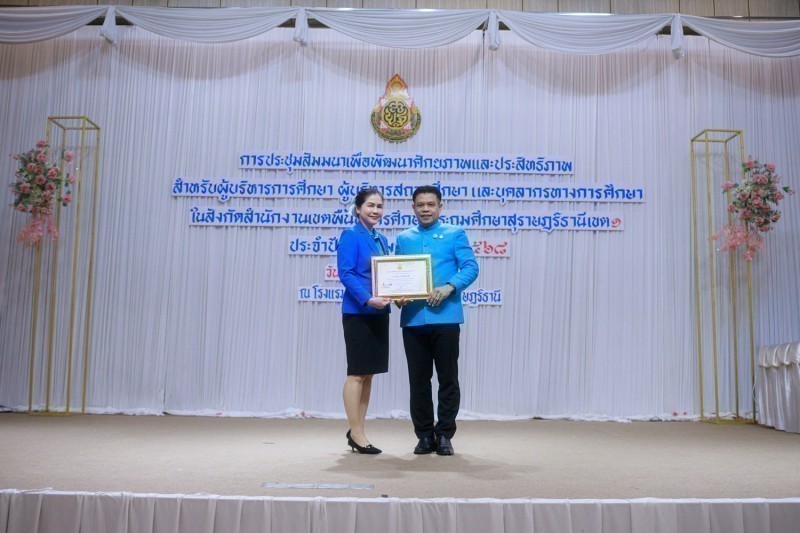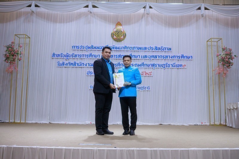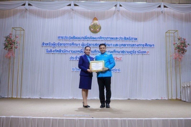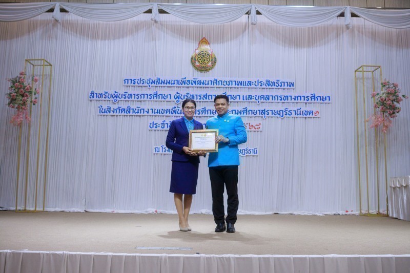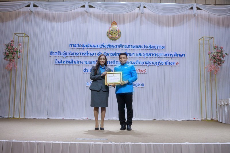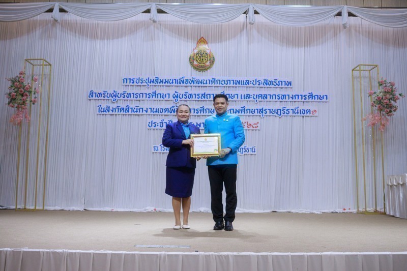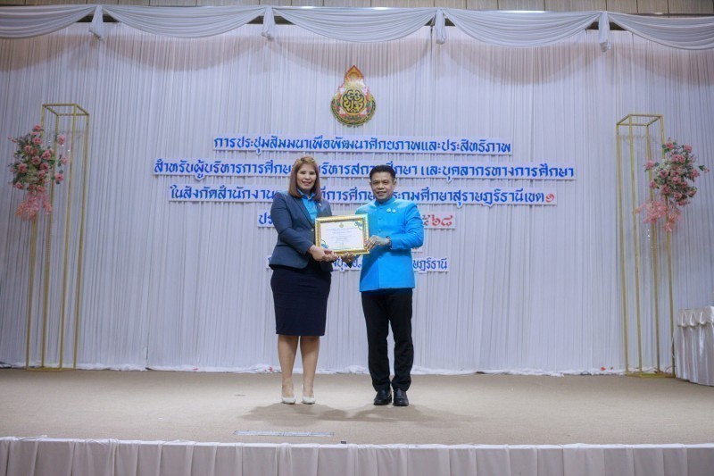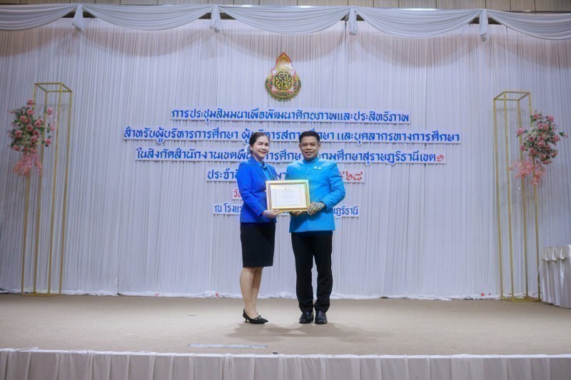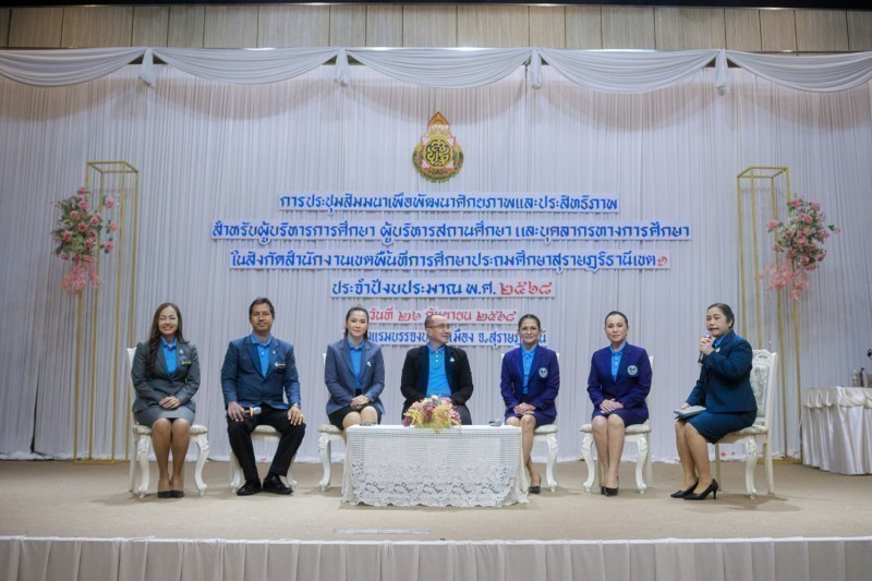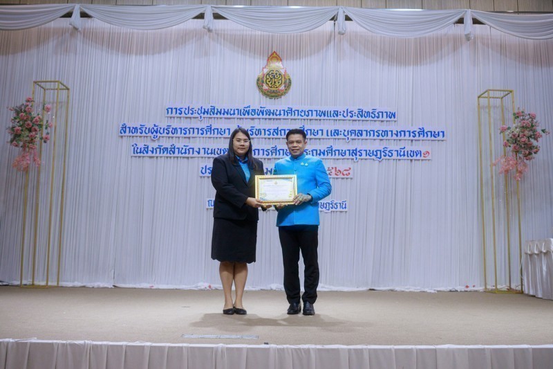 วันที่ 26 กันยายน 2568 นายเลอศักดิ์ รัชณาการ ผู้อำนวยการสำนักงานเขตพื้นที่การศึกษาประถมศึกษาสุราษฎร์ธานี เขต 1 เป็นประธานการประชุมสัมมนาเพื่อพัฒนาศักยภาพและประสิทธิภาพ สำหรับผู้บริหารการศึกษา ผู้บริหารสถานศึกษา ข้าราชการครู และบุคลากรทางการศึกษา สังกัดสำนักงานเขตพื้นที่การศึกษาประถมศึกษาสุราษฎร์ธานี เขต 1 (ครั้งที่ 3) โดยมีวัตถุประสงค์เพื่อให้ผู้บริหารการศึกษา ผู้อำนวยการกลุ่ม ศึกษานิเทศก์ ผู้อำนวยการโรงเรียน รองผู้อำนวยการโรงเรียน สังกัดสำนักงานเขตพื้นที่ การศึกษาประถมศึกษาสุราษฎร์ธานี เขต 1 ได้รับทราบนโยบาย จุดเน้น และ แนวทางการปฏิบัติงานในการพัฒนาคุณภาพการศึกษาของกระทรวงศึกษาธิการ และสำนักงานคณะกรรมการการศึกษาขั้นพื้นฐาน ส่งเสริม สนับสนุน ยกระดับคุณภาพการศึกษา เสริมสร้าง ความเข้มแข็ง ให้สถานศึกษาในสังกัด สามารถขับเคลื่อนแผนงาน/โครงการ ให้บรรลุเป้าหมายของสำนักงานเขตพื้นที่การศึกษาต่อไป โดยมีกลุ่มเป้าหมาย คือ ผู้บริหารการศึกษา ผู้อำนวยการกลุ่ม ศึกษานิเทศก์ ผู้อำนวยการโรงเรียน รองผู้อำนวยการโรงเรียน รักษาการ ผู้อำนวยการโรงเรียน และเจ้าหน้าที่ผู้รับผิดชอบที่เกี่ยวข้อง รวมจำนวน 192 คน ณ โรงแรมบรรจงบุรี อำเภอเมืองสุราษฎร์ธานี จังหวัดสุราษฎร์ธานี