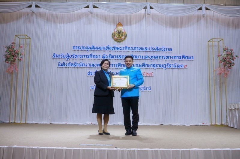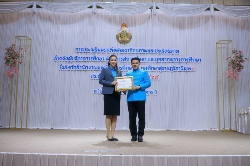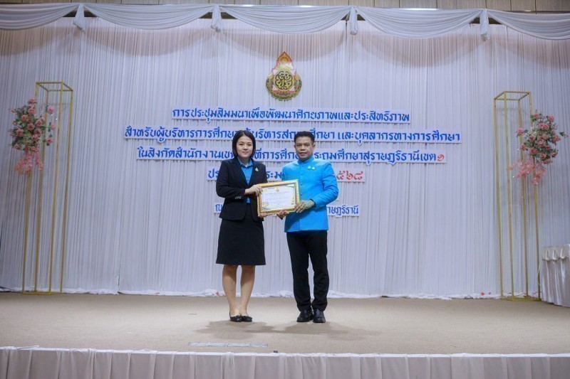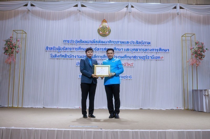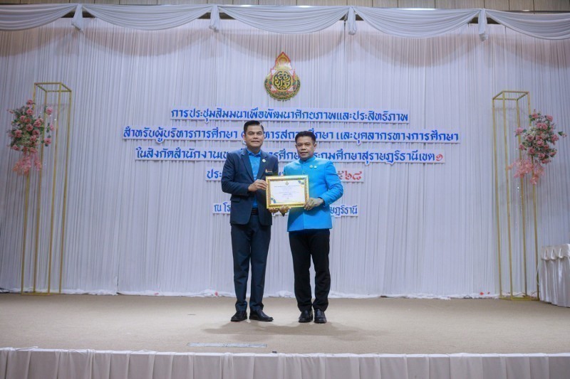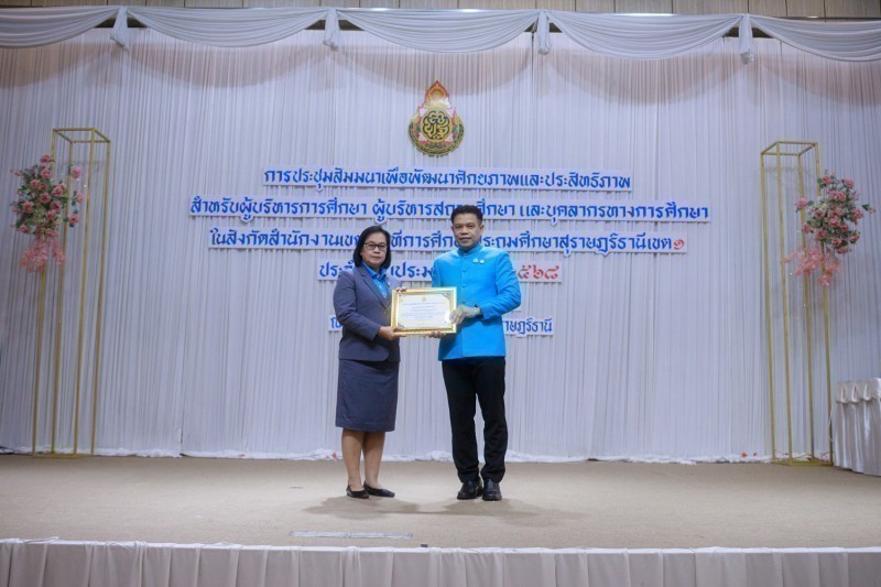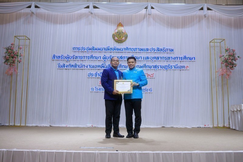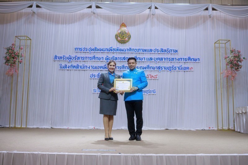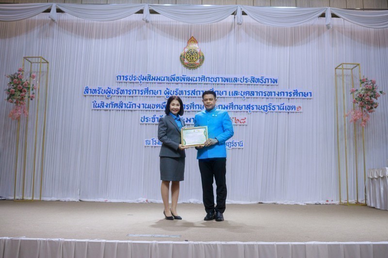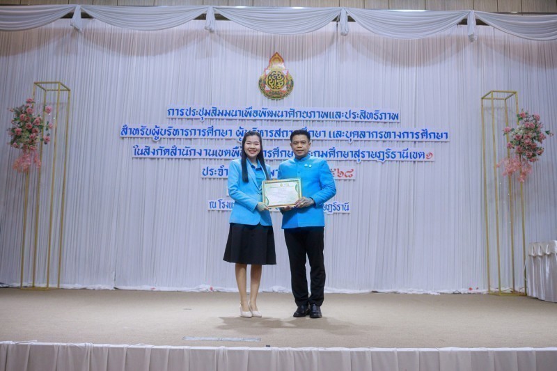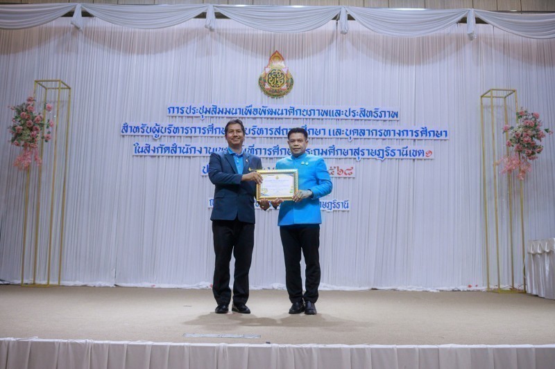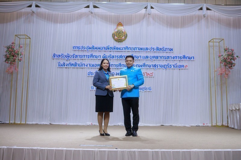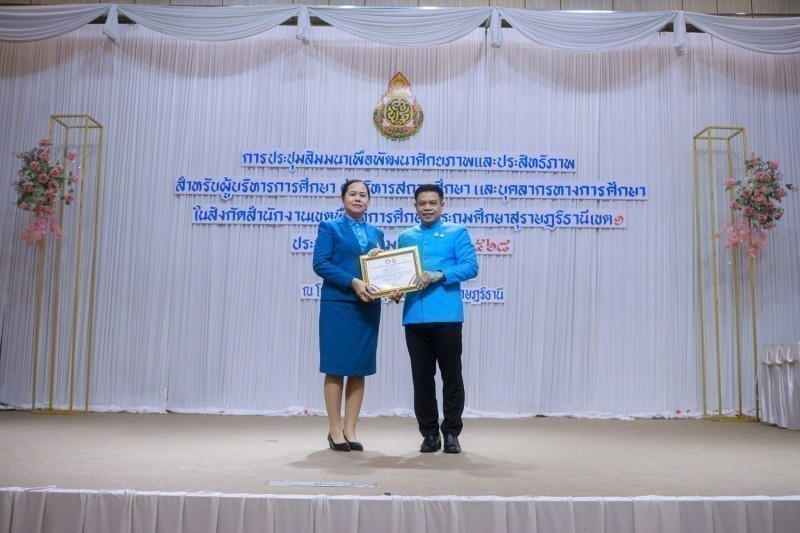 วันที่ 26 กันยายน 2568 นายเลอศักดิ์ รัชณาการ ผู้อำนวยการสำนักงานเขตพื้นที่การศึกษาประถมศึกษาสุราษฎร์ธานี เขต 1 เป็นประธานการประชุมสัมมนาเพื่อพัฒนาศักยภาพและประสิทธิภาพ สำหรับผู้บริหารการศึกษา ผู้บริหารสถานศึกษา ข้าราชการครู และบุคลากรทางการศึกษา สังกัดสำนักงานเขตพื้นที่การศึกษาประถมศึกษาสุราษฎร์ธานี เขต 1 (ครั้งที่ 3) โดยมีวัตถุประสงค์เพื่อให้ผู้บริหารการศึกษา ผู้อำนวยการกลุ่ม ศึกษานิเทศก์ ผู้อำนวยการโรงเรียน รองผู้อำนวยการโรงเรียน สังกัดสำนักงานเขตพื้นที่ การศึกษาประถมศึกษาสุราษฎร์ธานี เขต 1 ได้รับทราบนโยบาย จุดเน้น และ แนวทางการปฏิบัติงานในการพัฒนาคุณภาพการศึกษาของกระทรวงศึกษาธิการ และสำนักงานคณะกรรมการการศึกษาขั้นพื้นฐาน ส่งเสริม สนับสนุน ยกระดับคุณภาพการศึกษา เสริมสร้าง ความเข้มแข็ง ให้สถานศึกษาในสังกัด สามารถขับเคลื่อนแผนงาน/โครงการ ให้บรรลุเป้าหมายของสำนักงานเขตพื้นที่การศึกษาต่อไป โดยมีกลุ่มเป้าหมาย คือ ผู้บริหารการศึกษา ผู้อำนวยการกลุ่ม ศึกษานิเทศก์ ผู้อำนวยการโรงเรียน รองผู้อำนวยการโรงเรียน รักษาการ ผู้อำนวยการโรงเรียน และเจ้าหน้าที่ผู้รับผิดชอบที่เกี่ยวข้อง รวมจำนวน 192 คน ณ โรงแรมบรรจงบุรี อำเภอเมืองสุราษฎร์ธานี จังหวัดสุราษฎร์ธานี
