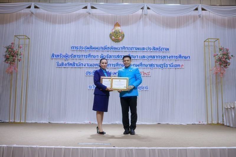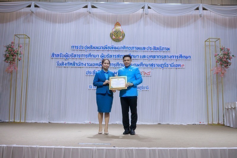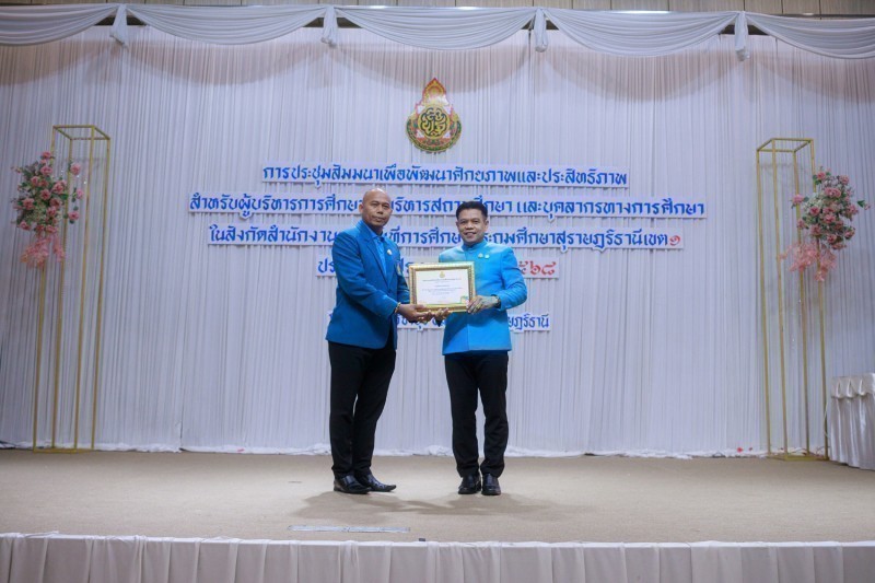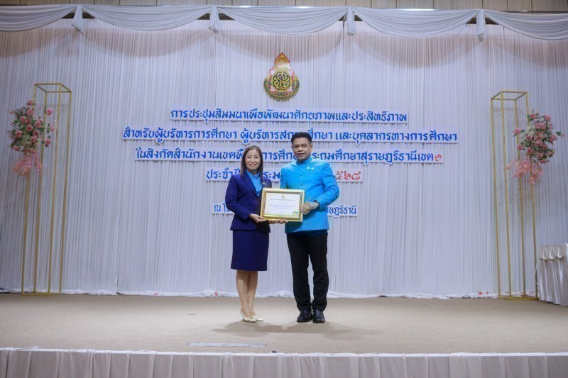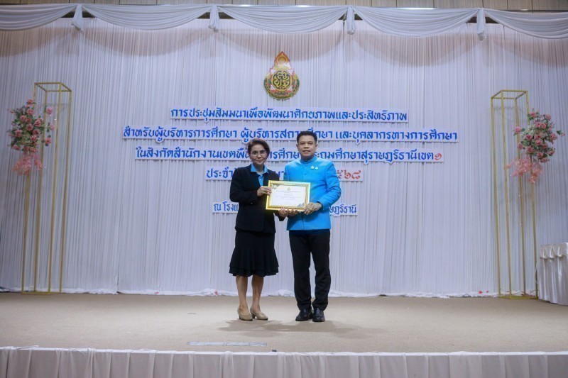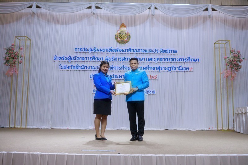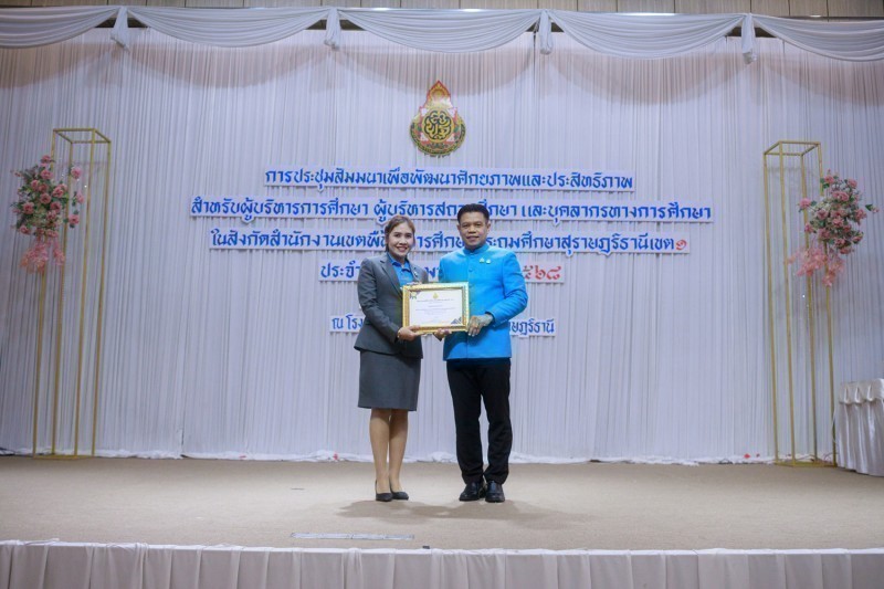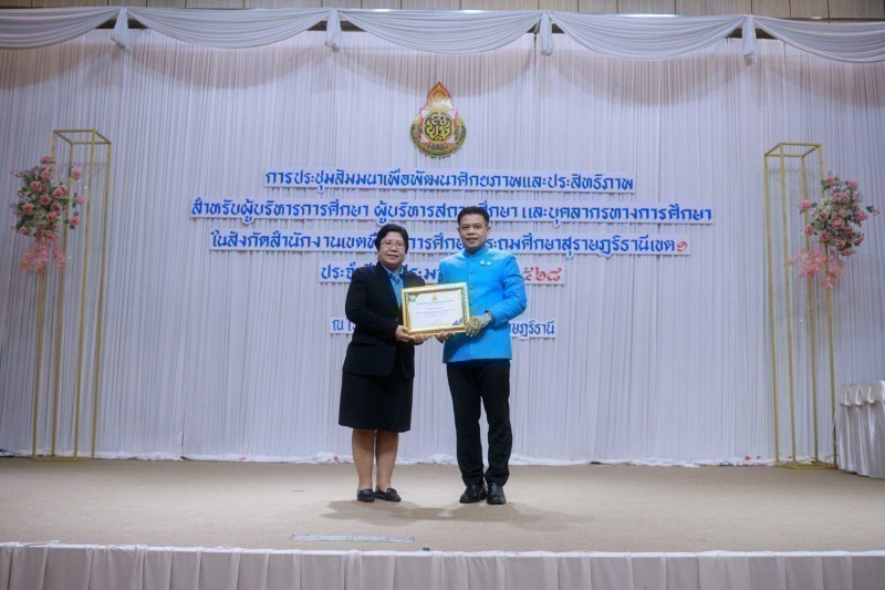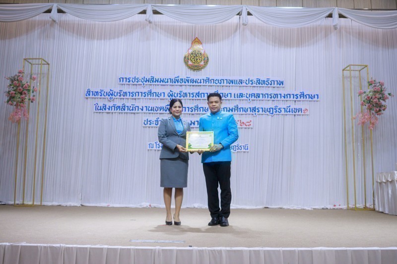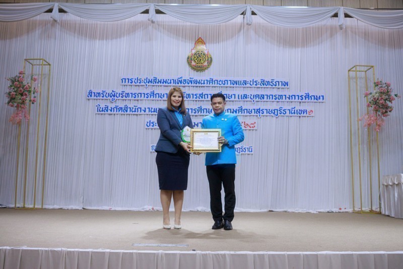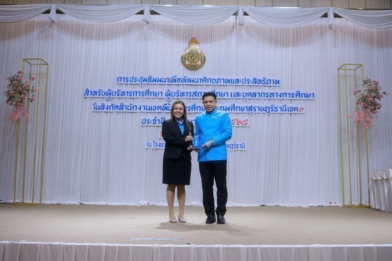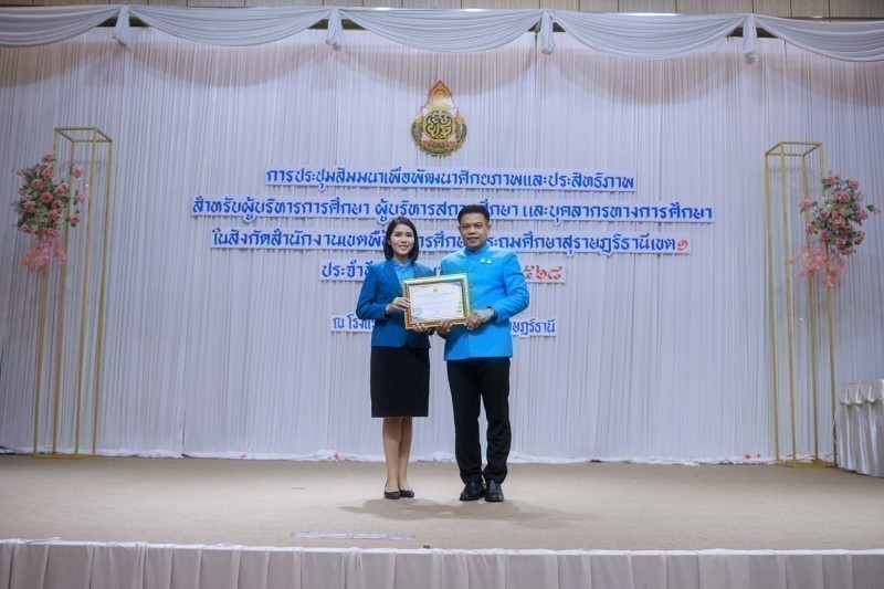 วันที่ 26 กันยายน 2568 นายเลอศักดิ์ รัชณาการ ผู้อำนวยการสำนักงานเขตพื้นที่การศึกษาประถมศึกษาสุราษฎร์ธานี เขต 1 เป็นประธานการประชุมสัมมนาเพื่อพัฒนาศักยภาพและประสิทธิภาพ สำหรับผู้บริหารการศึกษา ผู้บริหารสถานศึกษา ข้าราชการครู และบุคลากรทางการศึกษา สังกัดสำนักงานเขตพื้นที่การศึกษาประถมศึกษาสุราษฎร์ธานี เขต 1 (ครั้งที่ 3) โดยมีวัตถุประสงค์เพื่อให้ผู้บริหารการศึกษา ผู้อำนวยการกลุ่ม ศึกษานิเทศก์ ผู้อำนวยการโรงเรียน รองผู้อำนวยการโรงเรียน สังกัดสำนักงานเขตพื้นที่ การศึกษาประถมศึกษาสุราษฎร์ธานี เขต 1 ได้รับทราบนโยบาย จุดเน้น และ แนวทางการปฏิบัติงานในการพัฒนาคุณภาพการศึกษาของกระทรวงศึกษาธิการ และสำนักงานคณะกรรมการการศึกษาขั้นพื้นฐาน ส่งเสริม สนับสนุน ยกระดับคุณภาพการศึกษา เสริมสร้าง ความเข้มแข็ง ให้สถานศึกษาในสังกัด สามารถขับเคลื่อนแผนงาน/โครงการ ให้บรรลุเป้าหมายของสำนักงานเขตพื้นที่การศึกษาต่อไป โดยมีกลุ่มเป้าหมาย คือ ผู้บริหารการศึกษา ผู้อำนวยการกลุ่ม ศึกษานิเทศก์ ผู้อำนวยการโรงเรียน รองผู้อำนวยการโรงเรียน รักษาการ ผู้อำนวยการโรงเรียน และเจ้าหน้าที่ผู้รับผิดชอบที่เกี่ยวข้อง รวมจำนวน 192 คน ณ โรงแรมบรรจงบุรี อำเภอเมืองสุราษฎร์ธานี จังหวัดสุราษฎร์ธานี