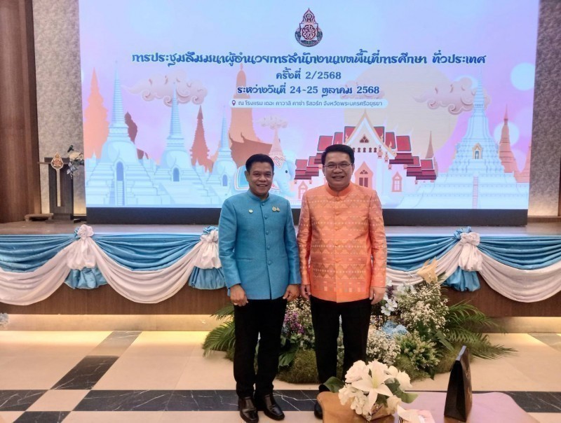 วันที่ 24 ตุลาคม 2568 นายเลอศักดิ์ รัชณาการ ผู้อำนวยการสำนักงานเขตพื้นที่การศึกษาประถมศึกษาสุราษฎร์ธานี เขต 1 ร่วมการประชุมผู้อำนวยการเขตพื้นที่การศึกษาทั่วประเทศ ครั้งที่ 2/2568 โดยได้รับเกียรติจากศาสตราจารย์ ดร.นฤมล ภิญโญสินวัฒน์ รัฐมนตรีว่าการกระทรวงศึกษาธิการ เป็นประธานในพิธีเปิดฯ พร้อมมอบนโยบายและแนวทางการขับเคลื่อนภารกิจสำคัญของกระทรวงศึกษาธิการ และให้เกียรติมอบโล่รางวัล เกียรติบัตรแก่สำนักงานเขตพื้นที่การศึกษาที่มีผลการปฏิบัติงานดีเด่นในแต่ละด้าน กล่าวรายงานวัตถุประสงค์โดยนายพิเชฐ โพธิ์ภักดี เลขาธิการคณะกรรมการการศึกษาขั้นพื้นฐาน พร้อมด้วยผู้บริหารระดับสูง สำนักงานคณะกรรมการการศึกษาขั้นพื้นฐาน ผู้อำนวยการสำนักงานเขตพื้นที่การศึกษา ทั้ง 245 เขต เข้าร่วม ณ โรงแรม เดอะคาวาลิ คาซ่า รีสอร์ท จังหวัดพระนครศรีอยุธยา