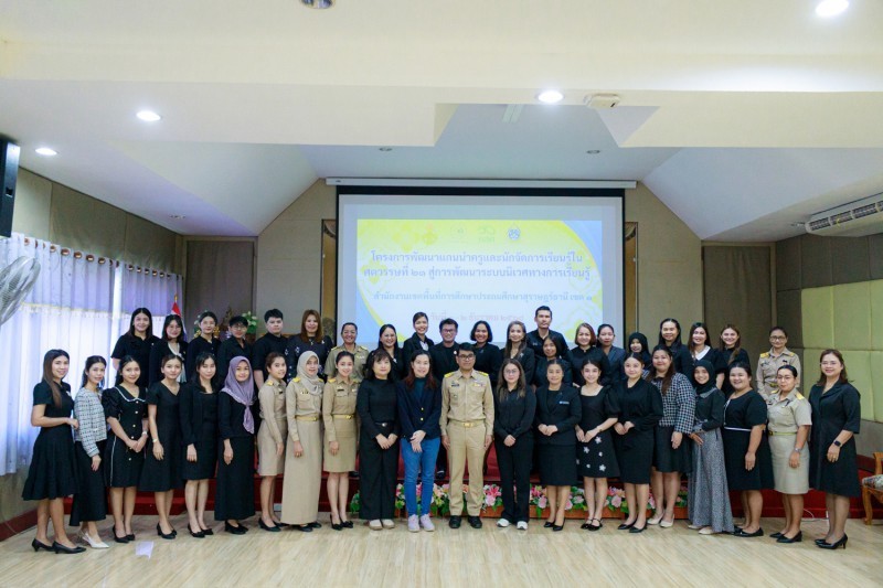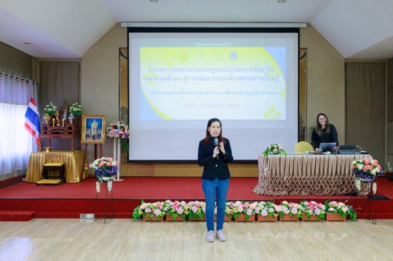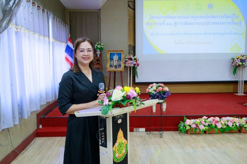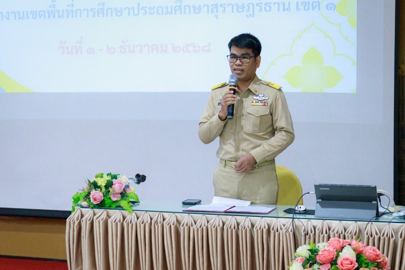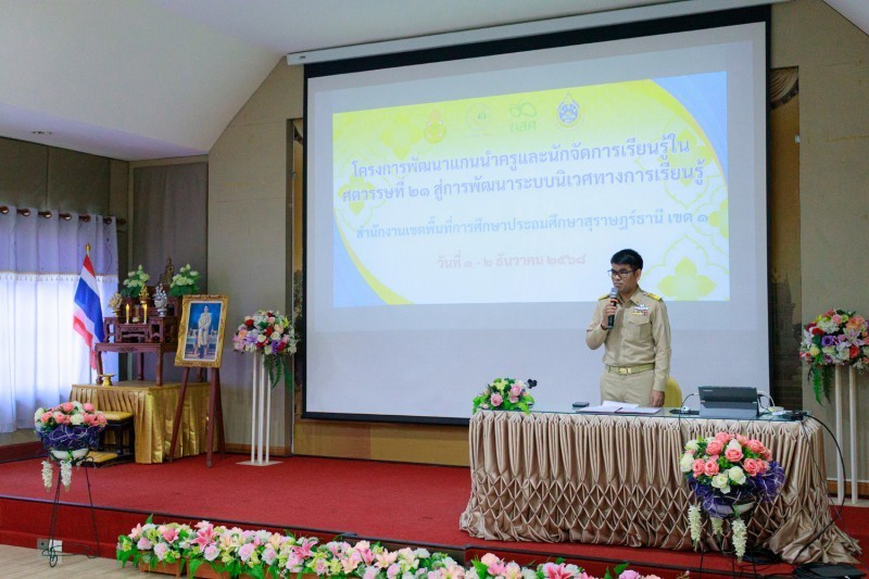 วันที่ 1 ธันวาคม 2568 นายเลอศักดิ์ รัชณาการ ผู้อำนวยการสำนักงานเขตพื้นที่การศึกษาประถมศึกษาสุราษฎร์ธานี เขต 1 มอบหมายให้นายสมใจ สิกขวัฒน์ รองผู้อำนวยการสำนักงานเขตพื้นที่การศึกษาประถมศึกษาสุราษฎร์ธานี เขต 1 เป็นประธานในพิธีเปิดการอบรมโครงการพัฒนาแกนนำครูและนักจัดการเรียนรู้ในศตวรรษที่ 21 สู่การพัฒนาระบบนิเทศทางการเรียนรู้ โดยมีวัตถุประสงค์เพื่อพัฒนาทักษะครู บุคลากรทางการศึกษาและนักจัดการเรียนรู้ แกนนำในการจัดการเรียนรู้ด้วยหลักสูตรที่ได้รับการรับรองจากสถาบันคุรุพัฒนา วิเคราะห์ผลการพัฒนาและการเปลี่ยนแปลงที่เกิดขึ้นกับนักเรียน จากการจัดการเรียนรู้ของครูและนักจัดการเรียนรู้แกนนำ กลุ่มเป้าหมายประกอบด้วยตัวแทนครู 11 โรงเรียน ซึ่งเป็นโรงเรียนนำร่องพื้นที่นวัตกรรมของสำนักงานเขตพื้นที่การศึกษาประถมศึกษาสุราษฎร์ธานี เขต 1 จำนวน 25 คน ณ ห้องประชุมเมืองคนดี สำนักงานเขตพื้นที่การศึกษาประถมศึกษาสุราษฎร์ธานี เขต 1