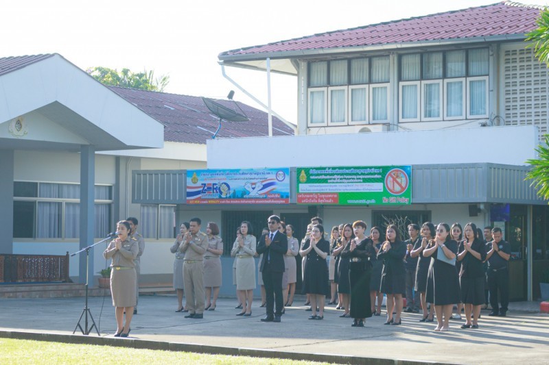 วันที่ 8 ธันวาคม 2568 นายเลอศักดิ์ รัชณาการ ผู้อำนวยการสำนักงานเขตพื้นที่การศึกษาประถมศึกษาสุราษฎร์ธานี เขต 1 นำข้าราชการและบุคลากรทางการศึกษาในสำนักงานเขตพื้นที่การศึกษา ร่วมโครงการเสริมสร้างคุณธรรม จริยธรรม และการทำความดี สร้างจิตสำนึกสาธารณะ โดยบูรณาการจัดกิจกรรมร่วมกับโครงการพัฒนาสำนักงานเขตพื้นที่การศึกษาคุณธรรม (องค์กรคุณธรรม) ต้นแบบ ภายใต้กิจกรรมส่งเสริมความดี “สานพลัง สรรสร้างงาน” ผ่านกิจกรรมเข้าแถวเคารพธงชาติไทย สวดมนต์ไหว้พระ กล่าวคำปฏิญญาเขตพื้นที่การศึกษาสุจริต ณ บริเวณลานหน้าห้องประชุมเมืองคนดี สำนักงานเขตพื้นที่การศึกษาประถมศึกษาสุราษฎร์ธานี เขต 1