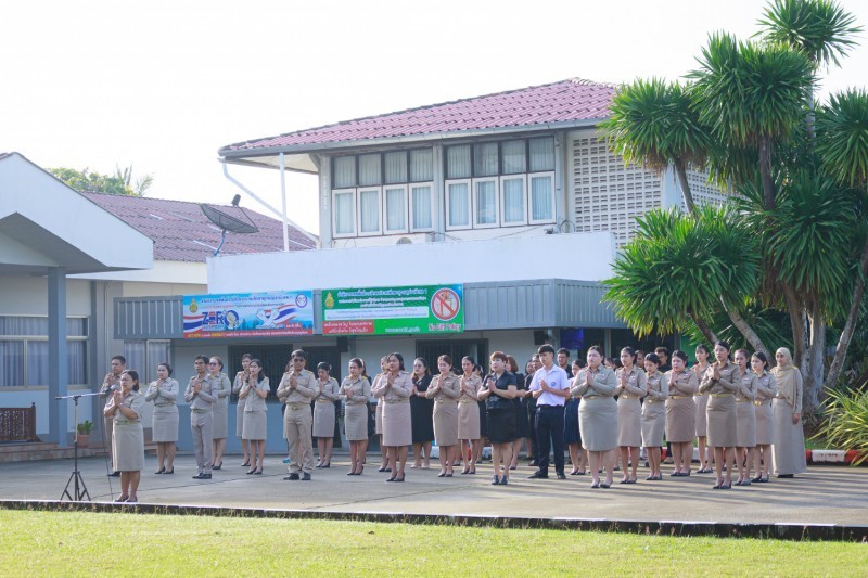 วันที่ 15 ธันวาคม 2568 นายเลอศักดิ์ รัชณาการ ผู้อำนวยการสำนักงานเขตพื้นที่การศึกษาประถมศึกษาสุราษฎร์ธานี เขต 1 นำข้าราชการและบุคลากรทางการศึกษาในสำนักงานเขตพื้นที่การศึกษา ร่วมโครงการเสริมสร้างคุณธรรม จริยธรรม และการทำความดี สร้างจิตสำนึกสาธารณะ โดยบูรณาการจัดกิจกรรมร่วมกับโครงการพัฒนาสำนักงานเขตพื้นที่การศึกษาคุณธรรม (องค์กรคุณธรรม) ต้นแบบ ภายใต้กิจกรรมส่งเสริมความดี “สานพลัง สรรสร้างงาน” ผ่านกิจกรรมเข้าแถวเคารพธงชาติไทย สวดมนต์ไหว้พระ กล่าวคำปฏิญญาเขตพื้นที่การศึกษาสุจริต ณ บริเวณลานหน้าห้องประชุมเมืองคนดี สำนักงานเขตพื้นที่การศึกษาประถมศึกษาสุราษฎร์ธานี เขต 1