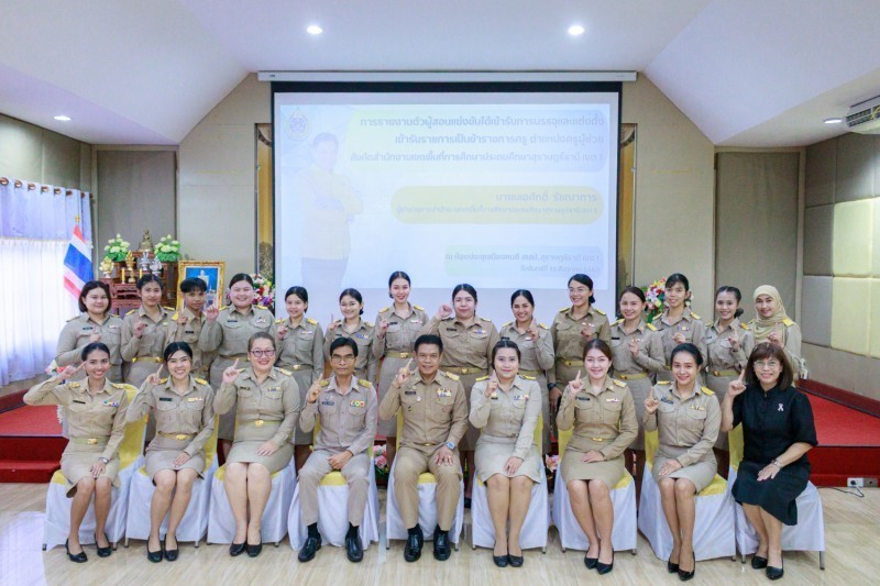 วันที่ 15 ธันวาคม 2568 นายเลอศักดิ์ รัชณาการ ผู้อำนวยการสำนักงานเขตพื้นที่การศึกษาประถมศึกษาสุราษฎร์ธานี เขต 1 พร้อมด้วยนายวีระพันธ์ พรมคำน้อย รองผู้อำนวยการสำนักงานเขตพื้นที่การศึกษาประถมศึกษาสุราษฎร์ธานี เขต 1 และบุคลากรกลุ่มบริหารงานบุคคล ร่วมแสดงความยินดีและให้โอวาทในการทำงานเป็นข้าราชการที่ดีแก่ข้าราชการครูและบุคลากรทางการศึกษา ตำแหน่งครูผู้ช่วย สังกัดสำนักงานคณะกรรมการการศึกษาขั้นพื้นฐาน ปี พ.ศ. 2568 จำนวน 14 ราย สละสิทธิ์ จำนวน 1 ราย ณ ห้องประชุมเมืองคนดี สำนักงานเขตพื้นที่การศึกษาประถมศึกษาสุราษฎร์ธานี เขต 1