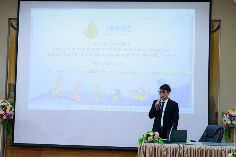 วันที่ 20 ธันวาคม 2568 นายเลอศักดิ์ รัชณาการ ผู้อำนวยการสำนักงานเขตพื้นที่การศึกษาประถมศึกษาสุราษฎร์ธานี เขต 1 มอบหมายให้นายสมใจ สิกขวัฒน์ รองผู้อำนวยการสำนักงานเขตพื้นที่การศึกษาประถมศึกษาสุราษฎร์ธานี เขต 1 เป็นประธานในพิธีเปิดการอบรมเชิงปฏิบัติการพัฒนาสมรรถนะการจัดการเรียนรู้ของครูผู้สอนภาษาอังกฤษ ระดับประถมศึกษา ตามที่สำนักงานคณะกรรมการการศึกษาขั้นพื้นฐาน ได้กำหนดนโยบายยกระดับมาตรฐานภาษาอังกฤษของนักเรียนในโรงเรียนประถมศึกษาทั่วประเทศ ให้นักเรียนเป็นผู้มีความพร้อมทางวิชาการ และทักษะการสื่อสารภาษาอังกฤษในระดับที่ใช้งานได้เป็นอย่างดี เพื่อเสริมสร้างสมรรถนะและความสามารถในการสื่อสารภาษาอังกฤษของคนไทย ให้ทันต่อการพัฒนาประเทศในศตวรรษที่ 21 สำนักงานเขตพื้นที่การศึกษาประถมศึกษาสุราษฎร์ธานี เขต 1 ได้ตระหนักถึงความสำคัญของการพัฒนาคุณภาพครูและบุคลากรทางการศึกษา ที่สอดรับกับนโยบายการศึกษาของกระทรวงศึกษาธิการและสำนักงานคณะกรรมการการศึกษาขั้นพื้นฐาน ประจำปีงบประมาณ พ.ศ. 2568 - 2569 ให้มีการพัฒนาครูและบุคลากรทางการศึกษา ให้มีความรู้และสมรรถนะด้านวิชาการ ด้านทักษะการจัดการเรียนรู้เชิงรุก (Active Learning) และเทคโนโลยีที่ทันสมัย ณ ห้องประชุมเมืองคนดี สำนักงานเขตพื้นที่การศึกษาประถมศึกษาสุราษฎร์ธานี เขต 1