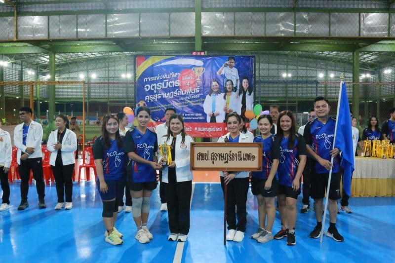 วันที่ 13 มกราคม 2568 นายเลอศักดิ์ รัชณาการ ผู้อำนวยการสำนักงานเขตพื้นที่การศึกษาประถมศึกษาสุราษฎร์ธานี เขต 1 ผู้อำนวยการเขตตรวจราชการที่ 5 เป็นประธานในพิธีเปิดการแข่งขันกีฬาจตุรมิตรคุรุสุราษฎร์สัมพันธ์ ครั้งที่ 4 มีวัตถุประสงคเพื่อให้ผู้บริหารการศึกษา ผู้บริหารสถานศึกษา ครูและบุคลากรทางการศึกษา ได้รับการพัฒนาศักยภาพให้มีคุณภาพตามมาตรฐานสากล และมีทักษะที่จำเป็นในศตวรรษที่ 21 สร้างความรัก ความสามัคคี และความสัมพันธ์อันดีในหมู่คณะระหว่างหน่วยงานอ ส่งเสริมสุขภาพพลานามัย และให้บุคลากรสามารถนำจิตวิญญาณของนักกีฬาไปปรับ ใช้ในการพัฒนาองค์กรและการปฏิบัติงานได้อย่างมีประสิทธิภาพ ณ สนามฟุตบอลอาเมนอารีน่า อำเภอเมืองสุราษฎร์ธานี จังหวัดสุราษฎร์ธานี