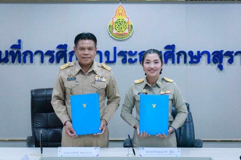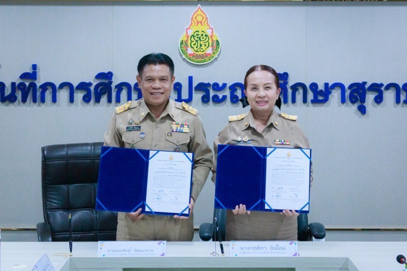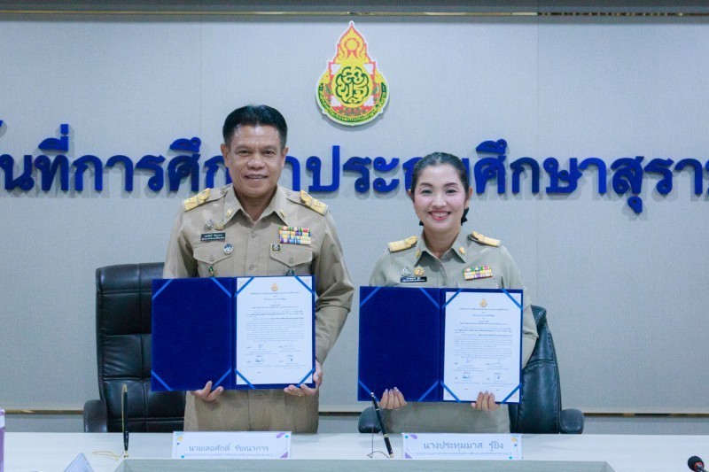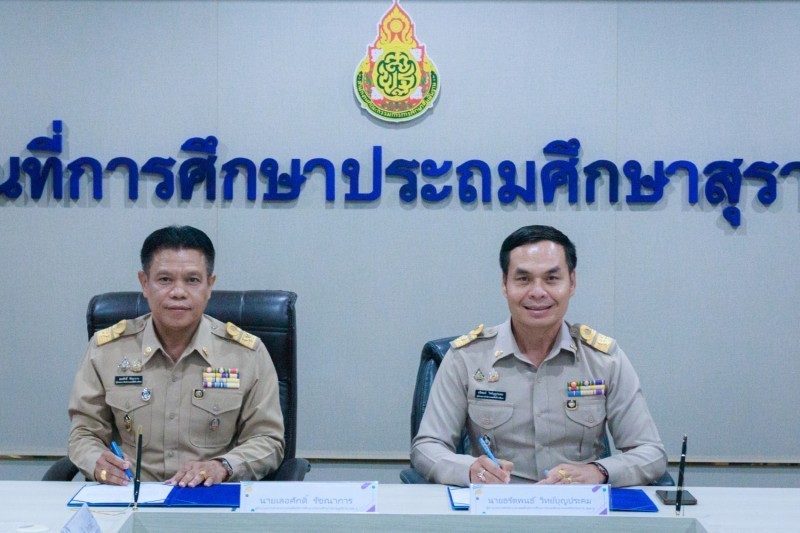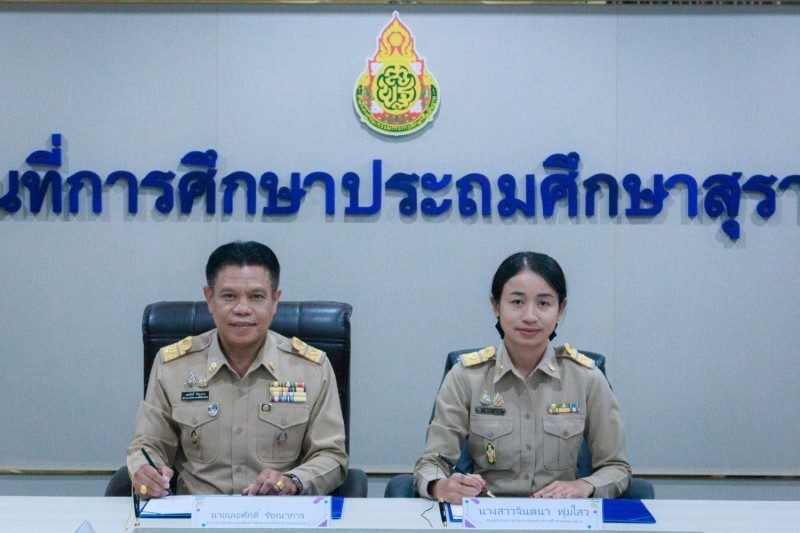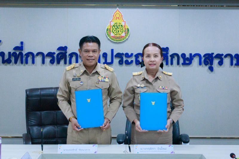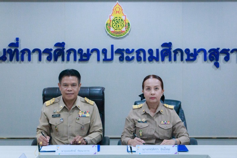 วันที่ 22 มกราคม 2569 นายเลอศักดิ์ รัชณาการ ผู้อำนวยการสำนักงานเขตพื้นที่การศึกษาประถมศึกษาสุราษฎร์ธานี เขต 1 ผู้อำนวยการเขตตรวจราชการที่ 5 เป็นประธานการจัดทำบันทึกข้อตกลงในการปฏิบัติงานในหน้าที่ตำแหน่งผู้อำนวยการสำนักงานเขตพื้นที่การศึกษาและ ตำแหน่งรองผู้อำนวยการสำนักงานเขตพื้นที่การศึกษา สังกัดสำนักงานคณะกรรมการการศึกษาขั้นพื้นฐาน โดยศูนย์ประสานงานประจำเขตตรวจราชการที่ 5 (ชุมพร สุราษฎร์ธานี นครศรีธรรมราช พัทลุง สงขลา) เพื่อให้เป็นไปตามเงื่อนไขของหลักเกณฑ์และวิธีการคัดเลือกบุคคลเพื่อบรรจุและแต่งตั้ง สำนักงานคณะกรรมการการศึกษาขั้นพื้นฐาน ได้อนุมัติให้ดำเนินการจัดทำบันทึกข้อตกลงในการปฏิบัติงานในหน้าที่ ตำแหน่งผู้อำนวยการสำนักงานเขตพื้นที่การศึกษา และตำแหน่งรองผู้อำนวยการสำนักงานเขตพื้นที่การศึกษา โดยมอบหมายให้เขตตรวจราชการ เป็นผู้ดำเนินการจัดทำบันทึกข้อตกลงในการปฏิบัติงาน ศูนย์ประสานงานประจำเขตตรวจราชการที่ 5 มีจำนวนผู้ได้รับแต่งตั้งให้ดำรงตำแหน่งผู้อำนวยการ สำนักงานเขตพื้นที่การศึกษา จำนวน 1 ราย และตำแหน่งรองผู้อำนวยการสำนักงานเขตพื้นที่การศึกษา จำนวน 5 ราย ดังนี้ สำนักงานเขตพื้นที่การศึกษาประถมศึกษานครศรีธรรมราช เขต 3 ตำแหน่งผู้อำนวยการสำนักงานเขตพื้นที่การศึกษา จำนวน 1 ราย และตำแหน่งรอง ผู้อำนวยการสำนักงานเขตพื้นที่การศึกษา จำนวน 1 ราย สำนักงานเขตพื้นที่การศึกษาประถมศึกษาชุมพร เขต 1 ตำแหน่งรองผู้อำนวยการสำนักงานเขตพื้นที่การศึกษา จำนวน 2 ราย สำนักงานเขตพื้นที่การศึกษาประถมศึกษาชุมพร เขต 2 ตำแหน่งรองผู้อำนวยการสำนักงานเขตพื้นที่การศึกษา จำนวน 2 ราย ณ ห้องประชุมธารตาปี สำนักงานเขตพื้นที่การศึกษาประถมศึกษาสุราษฎร์ธานี เขต 1