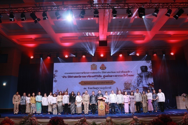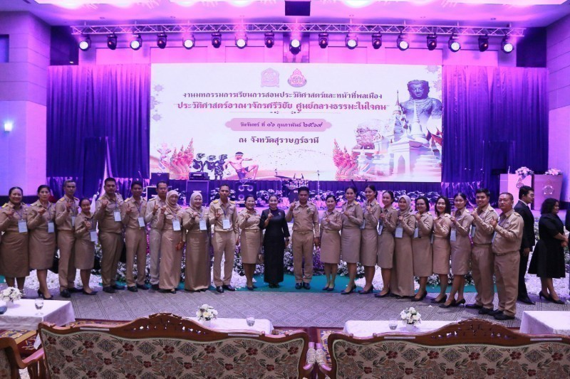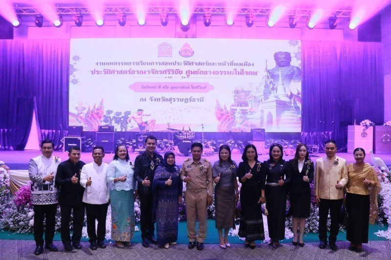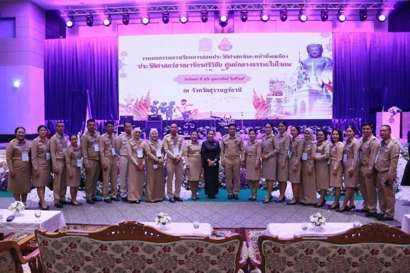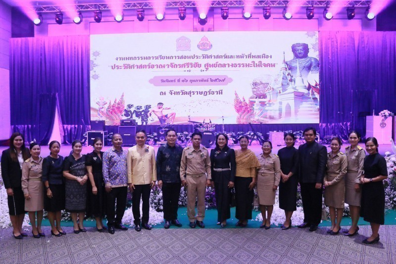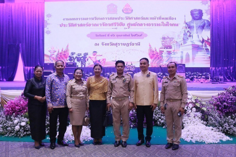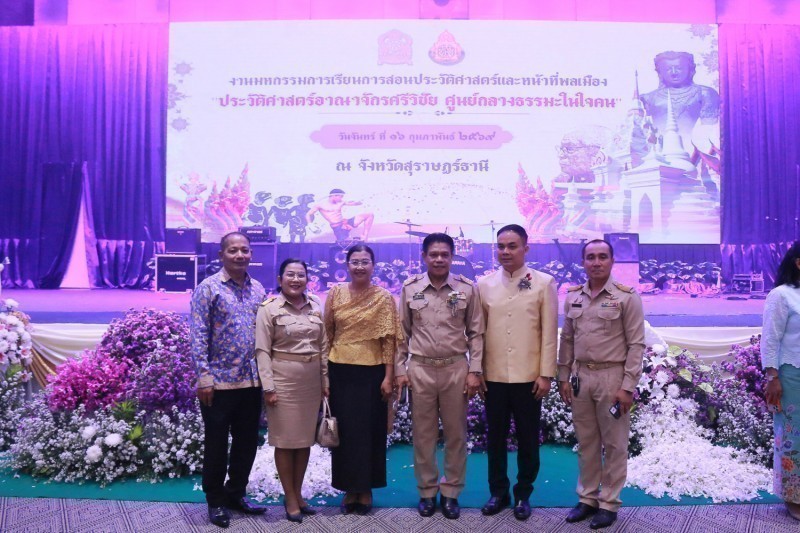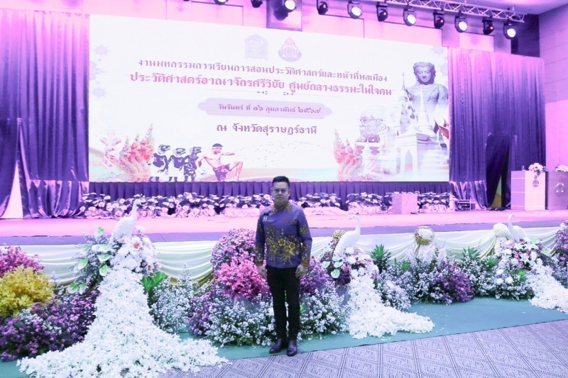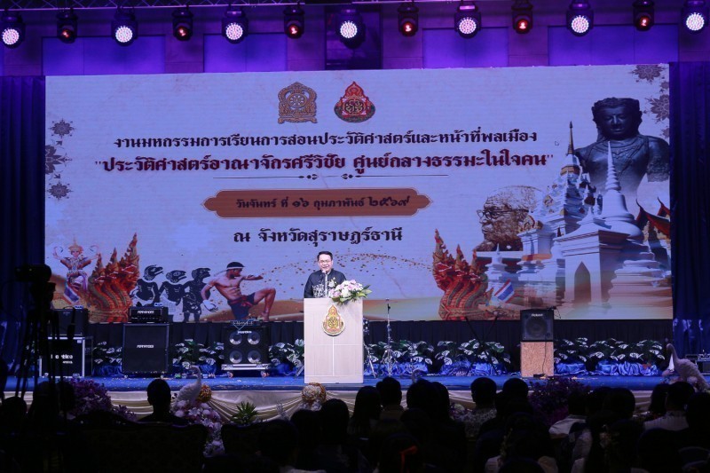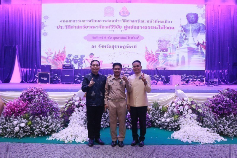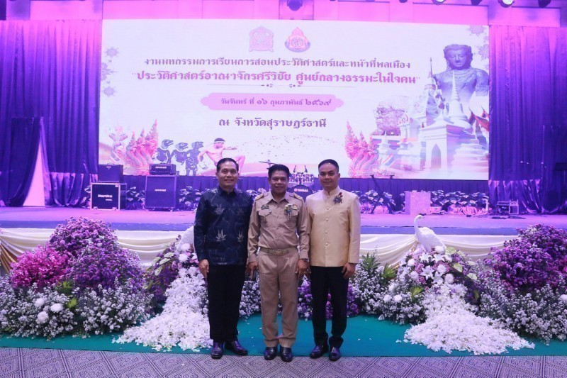 วันที่ 16 กุมภาพันธ์ 2569 นายเลอศักดิ์ รัชณาการ ผู้อำนวยการสำนักงานเขตพื้นที่การศึกษาประถมศึกษาสุราษฎร์ธานี เขต 1 ร่วมพิธีเปิดงานมหกรรมการเรียนการสอนประวัติศาสตร์และหน้าที่พลเมือง ภายใต้หัวข้อ “ประวัติศาสตร์อาณาจักรศรีวิชัย ศูนย์กลางธรรมะในใจคน” ระหว่างวันที่ 15 – 17 กุมภาพันธ์ 2569 เพื่อขับเคลื่อนนโยบายการพัฒนาการเรียนรู้ประวัติศาสตร์ของสำนักงานคณะกรรมการการศึกษาขั้นพื้นฐาน (สพฐ.) สู่การปฏิบัติในระดับพื้นที่อย่างเป็นรูปธรรม โดยได้รับเกียรติจาก ดร.พิเชฐ โพธิ์ภักดี เลขาธิการคณะกรรมการการศึกษาขั้นพื้นฐาน เป็นประธานในพิธี พร้อมบรรยายพิเศษทิศทางการยกระดับคุณภาพการเรียนการสอนประวัติศาสตร์และหน้าที่พลเมืองในสถานศึกษา มุ่งสร้างผู้เรียนให้มีความรู้คู่คุณธรรม มีจิตสำนึกในความเป็นไทย และตระหนักในบทบาทหน้าที่ของตนในฐานะพลเมืองของประเทศ ณ โรงแรมไดมอนด์พลาซ่า อำเภอเมือง จังหวัดสุราษฎร์ธานี