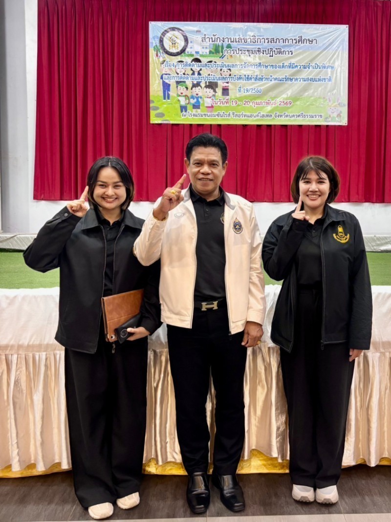 วันที่ 19 กุมภาพันธ์ 2569 นายเลอศักดิ์ รัชราการ ผู้อำนวยการสำนักงานเขตพื้นที่การศึกษาประถมศึกษาสุราษฎร์ธานี เขต 1 พร้อมด้วยบุคลากรสำนักงานเขตพื้นที่การศึกษา ร่วมการประชุมเชิงปฏิบัติการการติดตามและประเมินผลการจัดการศึกษาของเด็กที่มีความต้องการจำเป็นพิเศษ และการติดตามและประเมินผลการบังคับใช้คำสั่งหัวหน้าคณะรักษาความสงบแห่งชาติ 19/2560 ระหว่างวีนที่ 19 – 20 กุมภาพันธ์ 2569 โดยมีวัตถุประสงค์เพื่อสร้างความรับรู้และความเข้าใจและรับฟังสภาพปัญหาและความคิดเห็นจากผู้ที่เกี่ยวข้องในพื้นที่ ณ โรงแรมขนอมซันไรส์ รีสอร์ทแอนด์โฮเทล จังหวัดนครศรีธรรมราช