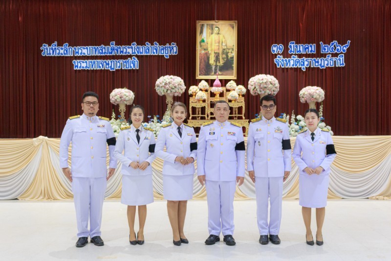 วันที่ 31 มีนาคม 2569 นายเลอศักดิ์ รัชณาการ ผู้อำนวยการสำนักงานเขตพื้นที่การศึกษาประถมศึกษาสุราษฎร์ธานี เขต 1 มอบหมายให้นายสมใจ สิกขวัฒน์ รองผู้อำนวยการสำนักงานเขตพื้นที่การศึกษาประถมศึกษาสุราษฎร์ธานี เขต 1 พร้อมด้วยคณะบุคลากรสำนักงานเขตพื้นที่การศึกษา ร่วมพิธีวันที่ระลึกพระบาทสมเด็จพระนั่งเกล้าเจ้าอยู่หัว พระมหาเจษฎาราชเจ้า โดยมีนายจุมพฏ วรรณฉัตรสิริ ผู้ว่าราชการจังหวัดสุราษฎร์ธานีเป็นประธาน ณ อาคารศูนย์กลางการประชุมสัมมนาภาคใต้ตอนบน ศูนย์ราชการจังหวัดสุราษฎร์ธานี