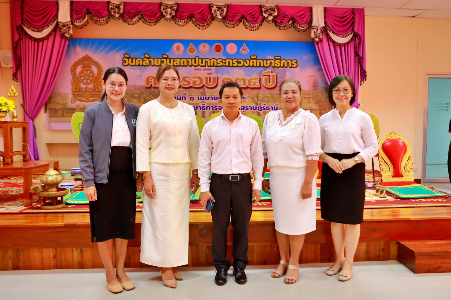 วันที่ 1 เมษายน 2569 นายเลอศักดิ์ รัชณาการ ผู้อำนวยการสำนักงานเขตพื้นที่การศึกษาประถมศึกษาสุราษฎร์ธานี เขต 1 มอบหมายให้นายเจด็จ หนูแกล้ว ผู้อำนวยการกลุ่มนโยบายและแผน พร้อมด้วยคณะบุคลากรสำนักงานเขตพื้นที่การศึกษา ร่วมกิจกรรมวันคล้ายวันสถาปนากระทรวงศึกษาธิการครบรอบ 134 ปี เพื่อทำบุญตักบาตรอุทิศส่วนกุศลแก่ผู้ทำคุณประโยชน์ให้แก่กระทรวงศึกษาธิการที่ล่วงลับไปแล้ว โดยมีนายบันดาล สถิรชวาล รองผู้ว่าราชการจังหวัดสุราษฎร์ธานีเป็นประธาน ณ ห้องประชุมชุมพล ชั้น 3สำนักงานศึกษาธิการจังหวัดสุราษฎร์ธานี