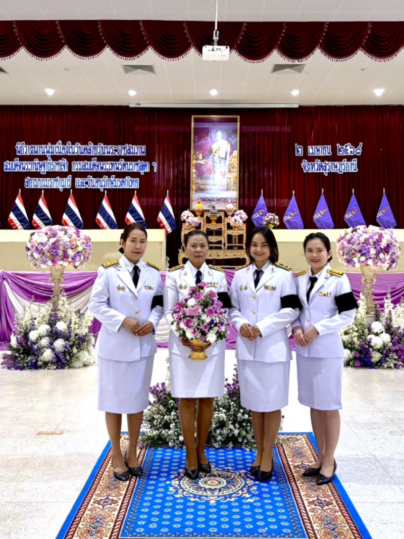 วันที่ 2 เมษายน 2569 นายเลอศักดิ์ รัชณาการ ผู้อำนวยการสำนักงานเขตพื้นที่การศึกษาประถมศึกษาสุราษฎร์ธานี เขต 1 มอบหมายให้นางสาวสุจารี ชัยประดิษฐ์ ผู้อำนวยการกลุ่มบริหารงานการเงินและสินทรัพย์ พร้อมด้วยคณะบุคลากรสำนักงานเขตพื้นที่การศึกษา ร่วมพิธีวางพานพุ่มดอกไม้ถวายราชสักการะ เนื่องในวันคล้ายวันพระราชสมภพสมเด็จพระกนิษฐาธิราชเจ้า กรมสมเด็จพระเทพรัตนราชสุดาฯ สยามบรมราชกุมารี 2 เมษายน 2569 โดยมีนายจุมพฏ วรรณฉัตรสิริ ผู้ว่าราชการจังหวัดสุราษฎร์ธานีเป็นประธานในพิธี ณ อาคารศูนย์กลางการประชุมสัมมนาภาคใต้ตอนบน ศูนย์ราชการจังหวัดสุราษฎร์ธานี