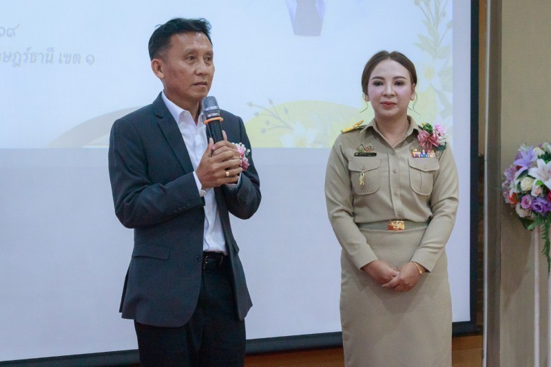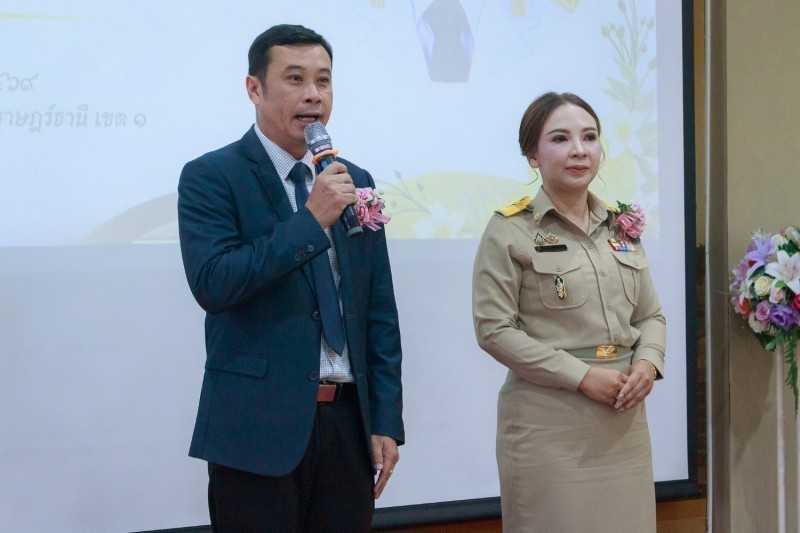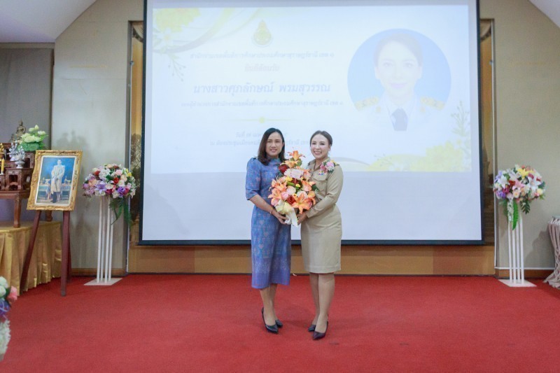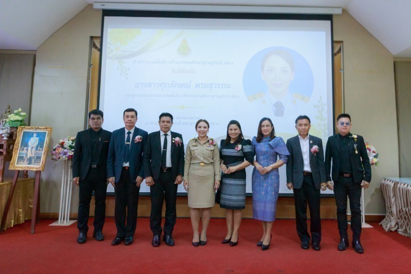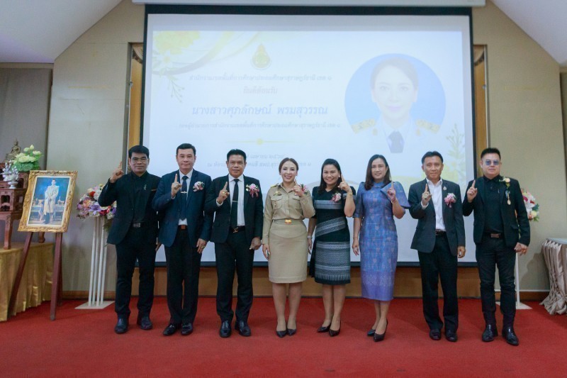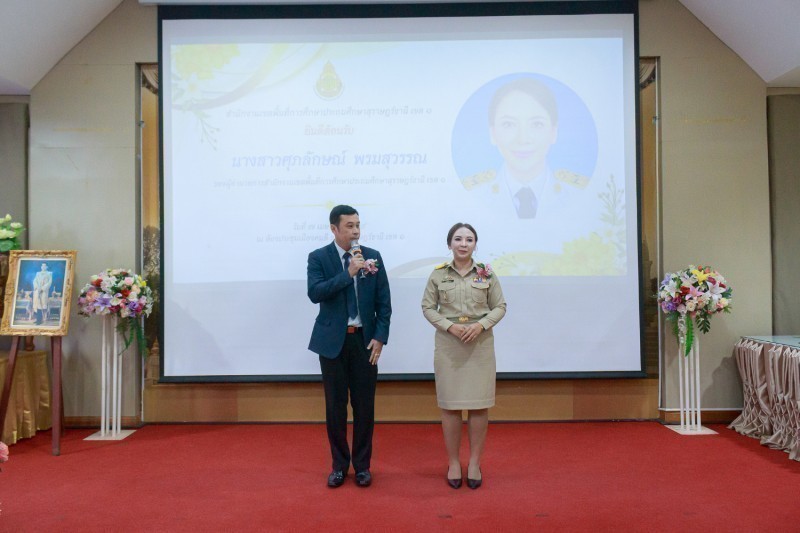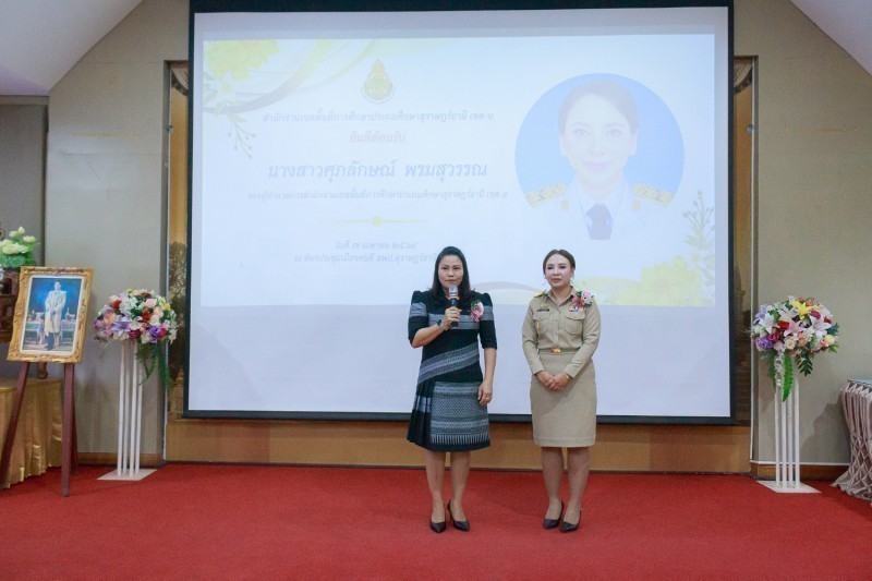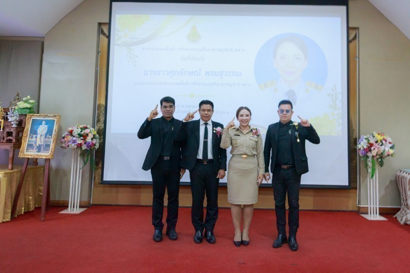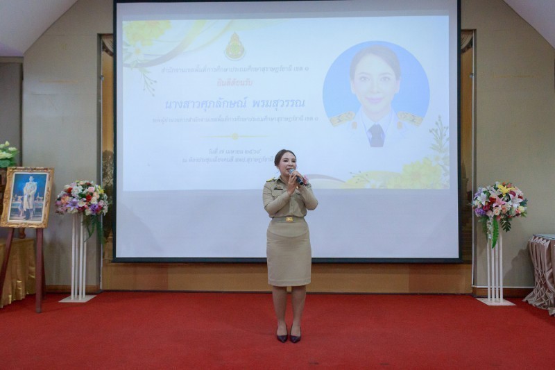 วันที่ 7 เมษายน 2569 นายเลอศักดิ์ รัชณาการ ผู้อำนวยการสำนักงานเขตพื้นที่การศึกษาประถมศึกษาสุราษฎร์ธานี เขต 1 พร้อมด้วยนายสมใจ สิกขวัฒน์, นายสมบัติ ปัญญาคง รองผู้อำนวยการสำนักงานเขตพื้นที่การศึกษาประถมศึกษาสุราษฎร์ธานี เขต 1 ผู้อำนวยการกลุ่ม บุคลากรสำนักงานเขตพื้นที่การศึกษา ผู้บริหารสถานศึกษา ข้าราชการครูและบุคลากรทางการศึกษา และแขกผู้มีเกียรติ ร่วมต้อนรับและแสดงความยินดีแก่นางสาวศุภลักษณ์ พรมสุวรรณ เนื่องในโอกาสบรรจุและแต่งตั้งให้ดำรงตำแหน่ง รองผู้อำนวยการสำนักงานเขตพื้นที่การศึกษาประถมศึกษาสุราษฎร์ธานี เขต 1 ณ ห้องประชุมเมืองคนดี สำนักงานเขตพื้นที่การศึกษาประถมศึกษาสุราษฎร์ธานี เขต 1