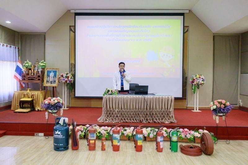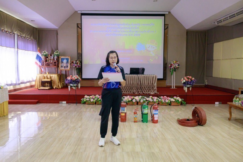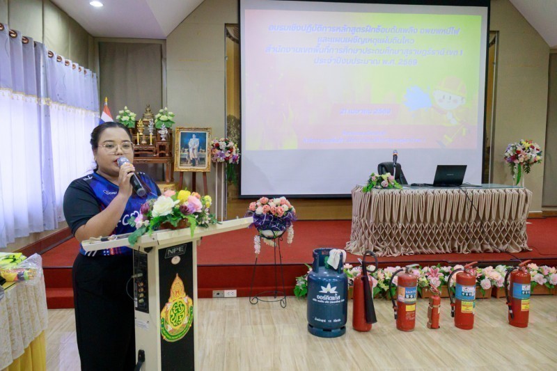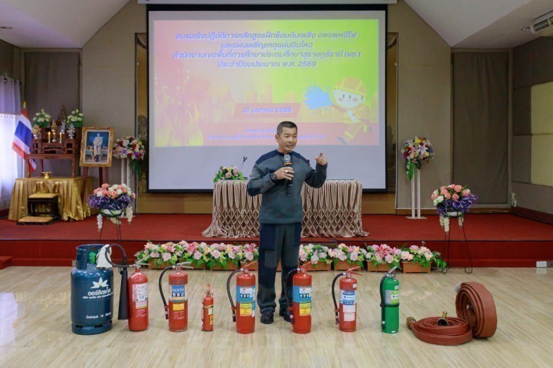 วันที่ 21 เมษายน 2569 นายเลอศักดิ์ รัชณาการ ผู้อำนวยการสำนักงานเขตพื้นที่การศึกษาประถมศึกษาสุราษฎร์ธานี เขต 1 เป็นประธานในพิธีเปิดการอบรมเชิงปฏิบัติการหลักสูตรฝึกซ้อมดับเพลิงและอพยพหนีไฟ และแผนเผชิญเหตุแผ่นดินไหว ในสำนักงานเขตพื้นที่การศึกษาประถมศึกษาสุราษฎร์ธานี เขต 1 มีวัตถุประสงค์ เพื่อฝึกซ้อมแผนป้องกันและระงับอัคคีภัย และแผนเผชิญเหตุแผ่นดินไหวให้แก่ข้าราชการครูและบุคลากรทางการศึกษา และลูกจ้าง จำนวน 73 คน เพื่อเตรียมรับมือกับอัคคีภัยที่อาจเกิดขึ้นในสำนักงาน สุจริต ณ ห้องประชุมเมืองคนดี สำนักงานเขตพื้นที่การศึกษาประถมศึกษาสุราษฎร์ธานี เขต 1
