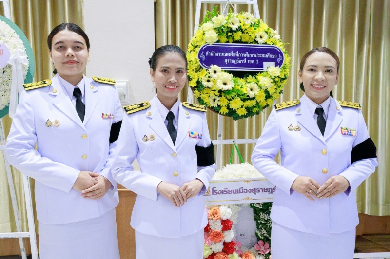 วันที่ 25 เมษายน 2569 นายเลอศักดิ์ รัชณาการ ผู้อำนวยการสำนักงานเขตพื้นที่การศึกษาประถมศึกษาสุราษฎร์ธานี เขต 1 มอบหมายให้นางสาวศุภลักษณ์ พรมสุวรรณ รองผู้อำนวยการสำนักงานเขตพื้นที่การศึกษาประถมศึกษาสุราษฎร์ธานี เขต 1 พร้อมด้วยบุคลากรสำนักงานเขตพื้นที่การศึกษา ร่วมพิธีวางพวงมาลาถวายราชสักการะ เนื่องในวันคล้ายวันสวรรคตสมเด็จพระนเรศวรมหาราช ประจำปี 2569 เพื่อแสดงออกถึงความจงรักภักดี และน้อมรำลึกในพระมหากรุณาธิคุณอันหาที่สุดมิได้ของสมเด็จพระนเรศวรมหาราช ผู้ทรงเป็นวีรกษัตริย์ผู้กอบกู้เอกราชและธำรงไว้ซึ่งอธิปไตยของชาติไทย โดยมีนายกล้าณรงค์ ยุติธรรม รองผู้ว่าราชการจังหวัดสุราษฎร์ธานี เป็นประธานประกอบพิธี ณ อาคารศูนย์กลางการประชุมสัมมนาภาคใต้ตอนบน ศาลากลางจังหวัดสุราษฎร์ธานี